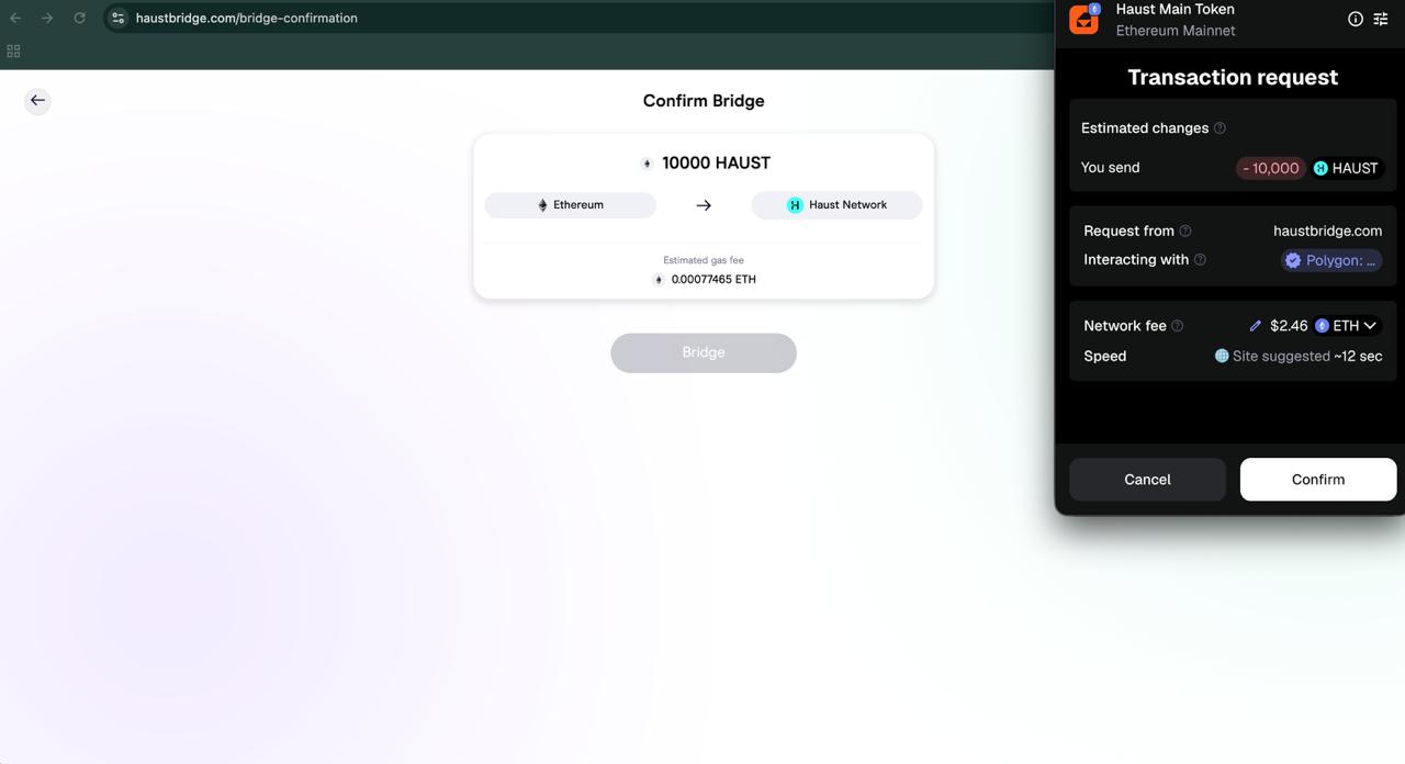 After selecting token and entering amount, press **Bridge**.
