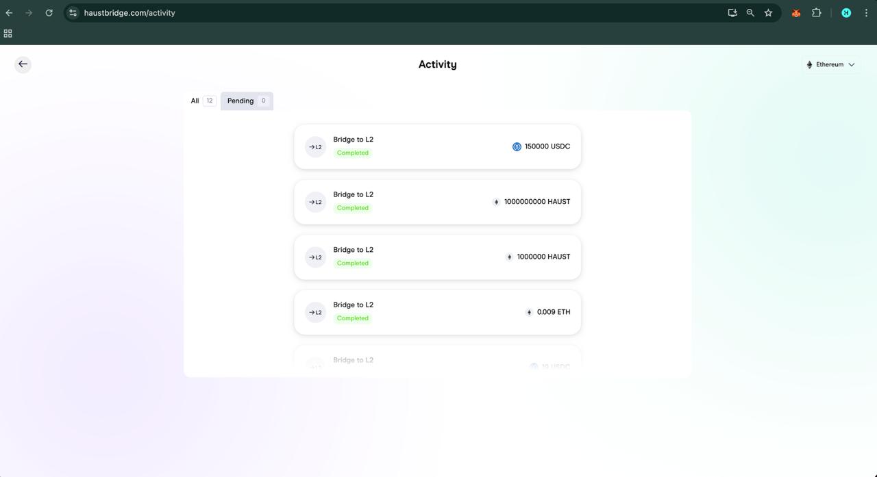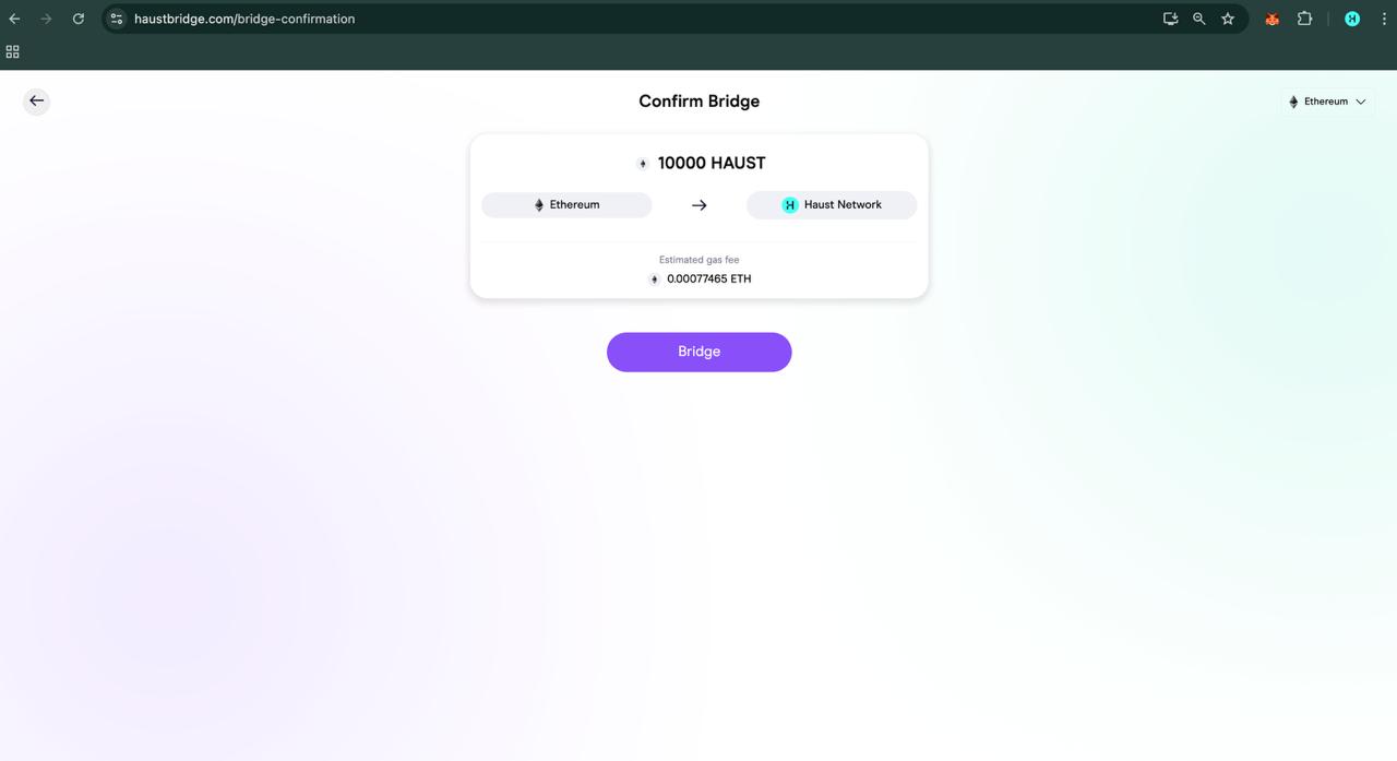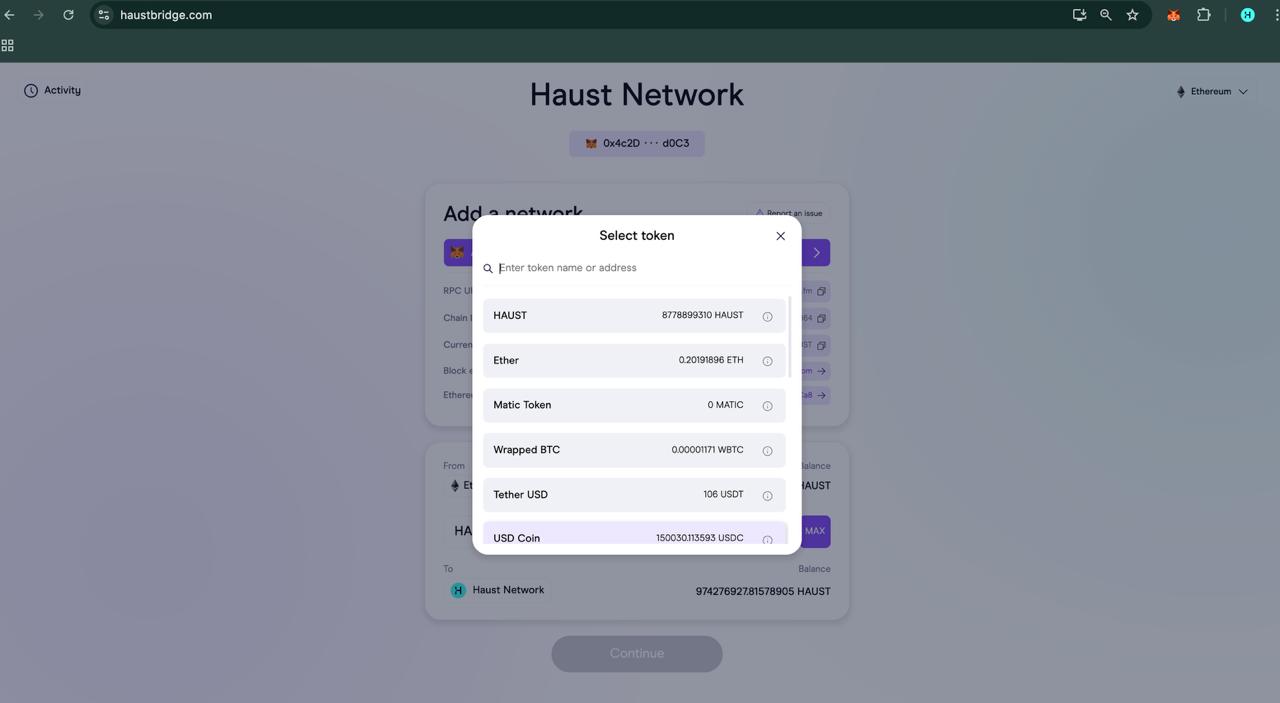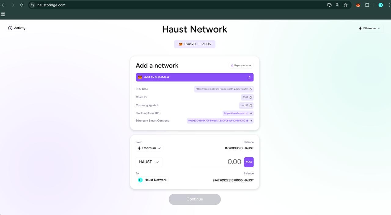 > Switch your network to Ethereum or Haust Network to continue, if needed.